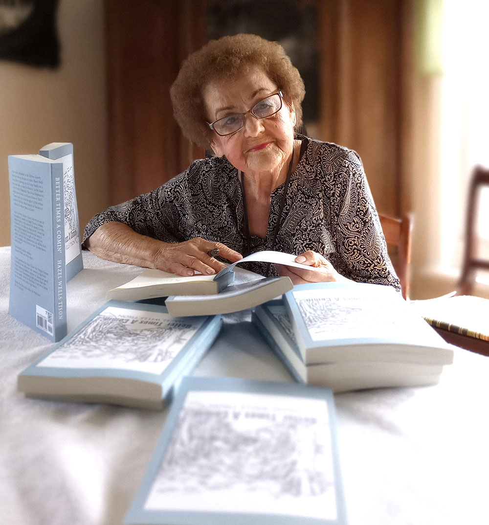 This week Hazel Wells Tison, 91, is celebrating the release of her first book, Better Times a Comin’. It’s a collection of her weekly columns in the Holmes County Advertiser about growing up during the Depression in a big family on a two-mule farm on Bonifay Route 1. She published it with the guidance of Sue Riddle Cronkite, 89, an author-publisher from the New Hope community in northwest Holmes County.